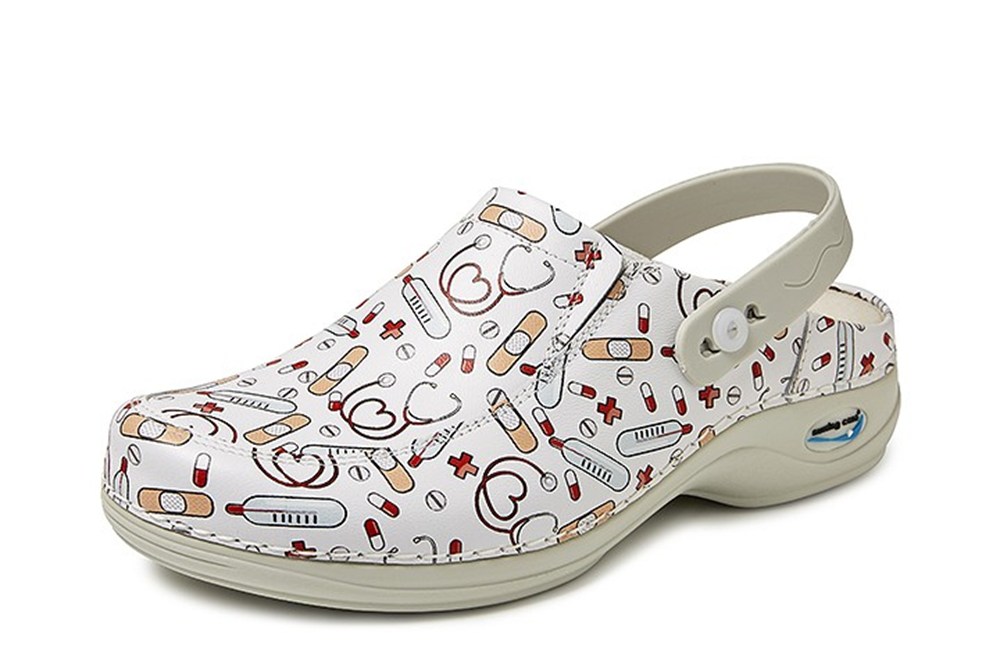 Unieke lederen klomp, die wasbaar is tot 30°C, antistatisch en anti-slip. Uitermate geschikt voor het werk in de zorg.