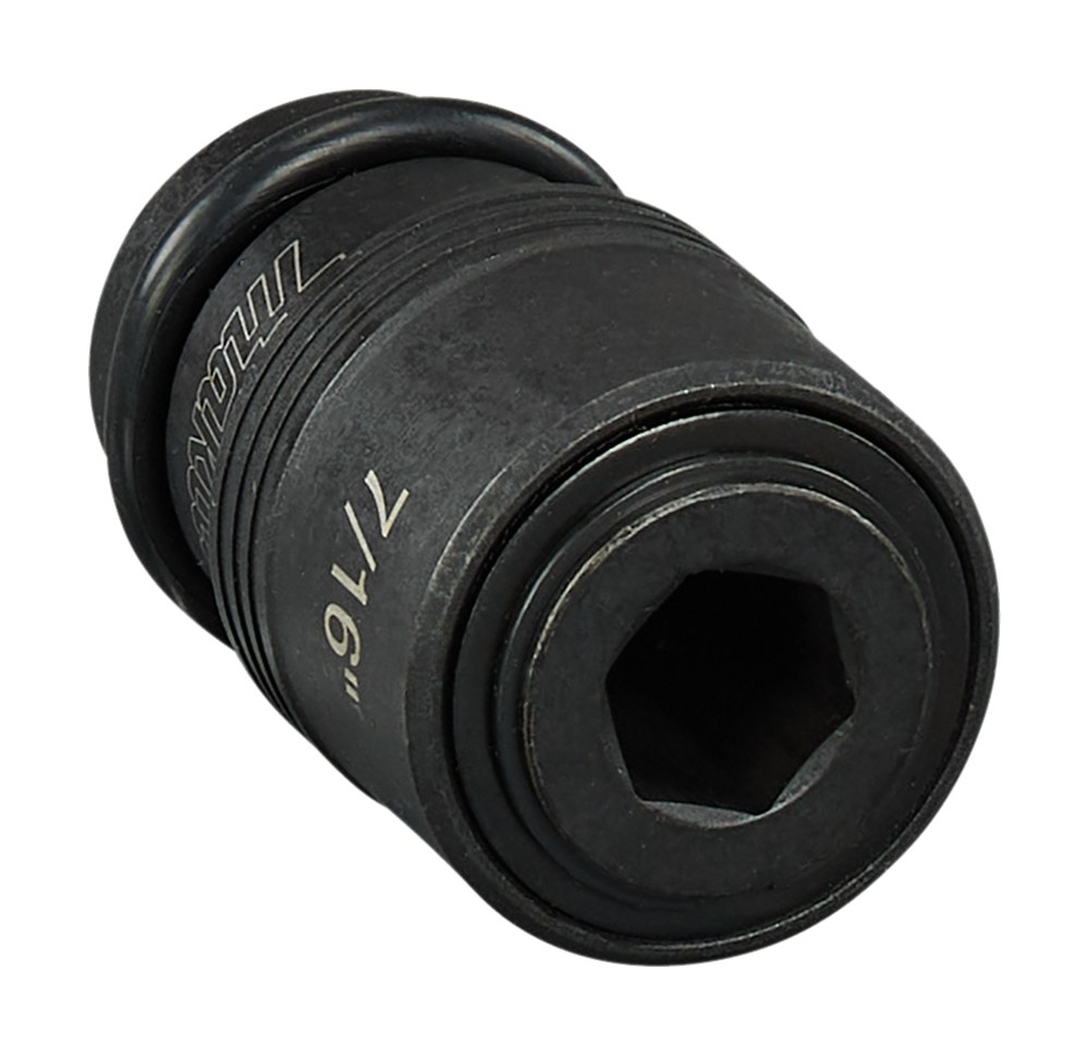 Reduceeradapters voor krachtdoppen. Krachtdopadapter met pin en o-ring voor 1/2" vierkant krachtdop opname naar 7/16" zeskant afgifte. Maakt slagmoersleutels geschikt voor het gebruik met bijvoorbeeld 7/16" slangenboren. Alleen te gebruiken met slagmoersleutels met een koppel tussen 440nm en 1000nm.
