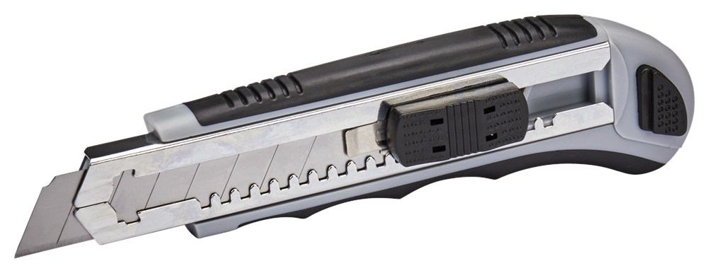 Makita afbreekmes met kunststof behuizing. Handig afbreekmes voor veelzijdige toepassingen zoals het snijden van karton of vloerbedekking. De mesjes zijn eenvoudig af te breken als ze versleten raken. Het blad heeft een dikte van 0,5mm en een hoogte van 18mm. Het afbreekmes wordt geleverd inclusief 7 reservemessen. De reservemessen bevinden zich aan de achterzijde van het mes. Naast het grijze afbreekmes heeft Makita tevens een blauwe variant beschikbaar onder artikelnummer: D-65713.